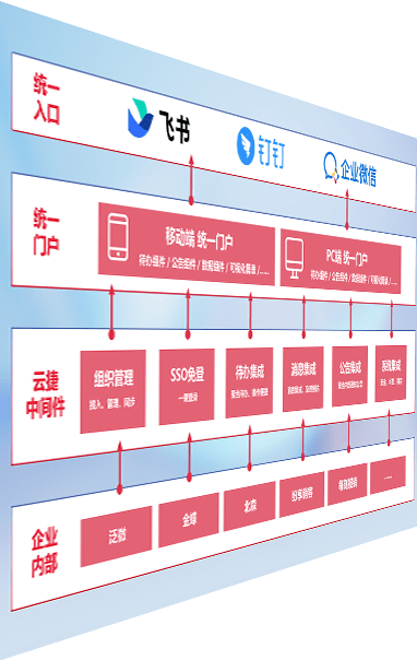 对协作平台提供支持服务,,,支持企业应用与协作平台对接,,,,包含组织同步、、、、消息集成、、、待办集成等。。。。支持目前主流的协作平台:钉钉、、、企微和飞书。。