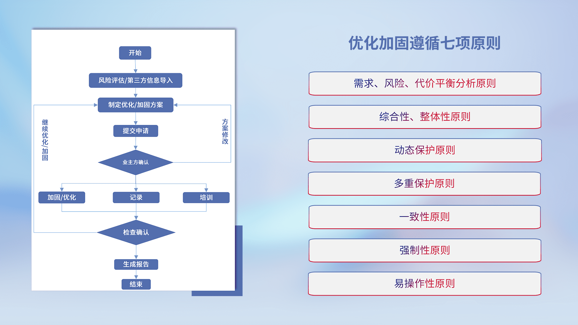最大程度利用现有资产,,,,对评估发现的问题进行封堵与整改,,,防止漏洞被利用,,提升整体网络安全性,,,为客户带来高标准的优化加固服务。。